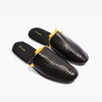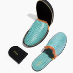 Women’s Crocodile Embossed Leather Foldable Slippers with Eco-Fur